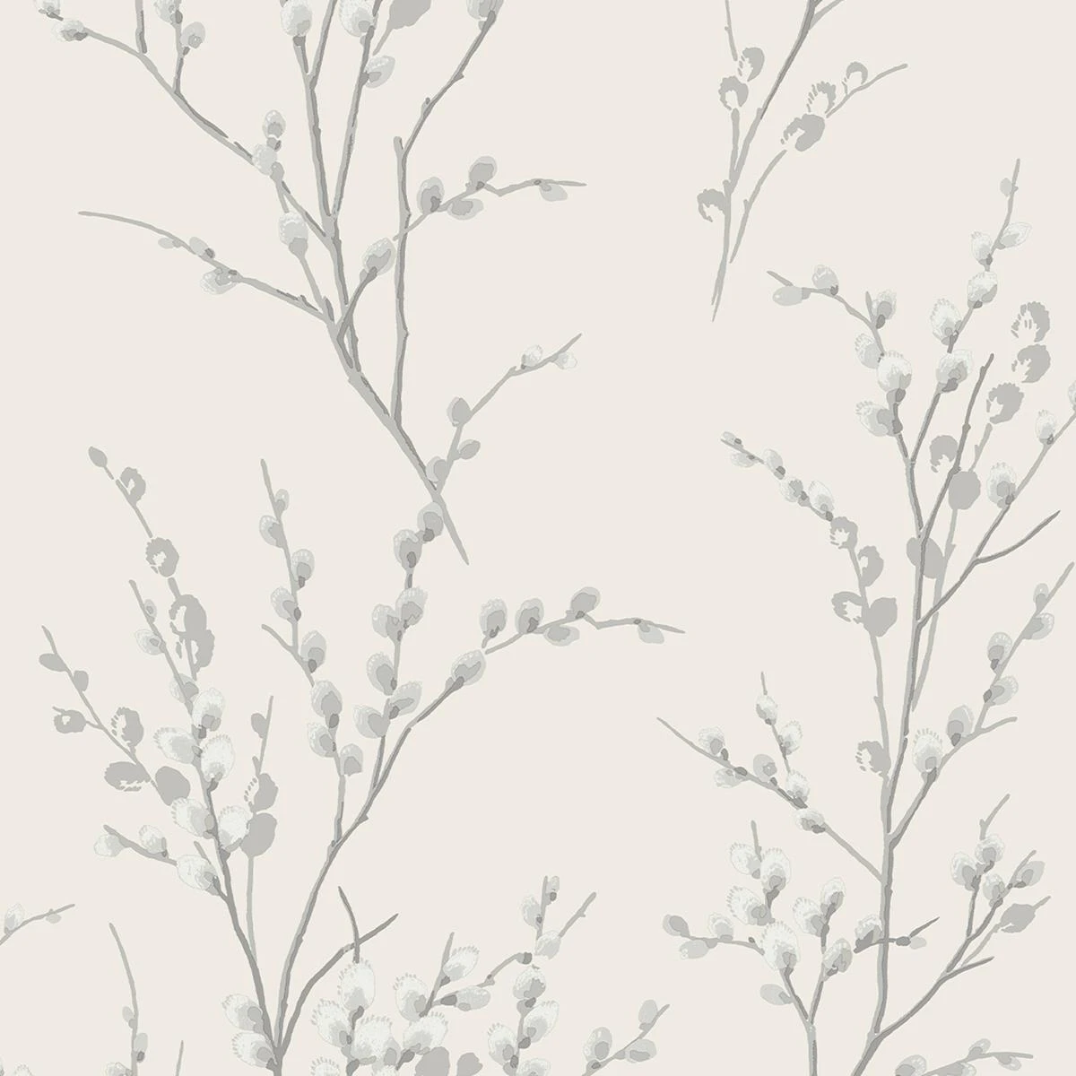 Het Pussy Willow dessin is een mooi en fris bloemenmotief dat elegantie brengt in iedere ruimte. De staalkleurige acccenten op een gebroken witte achtergrond geven een eigentijdse draai aan dit ontwerp.